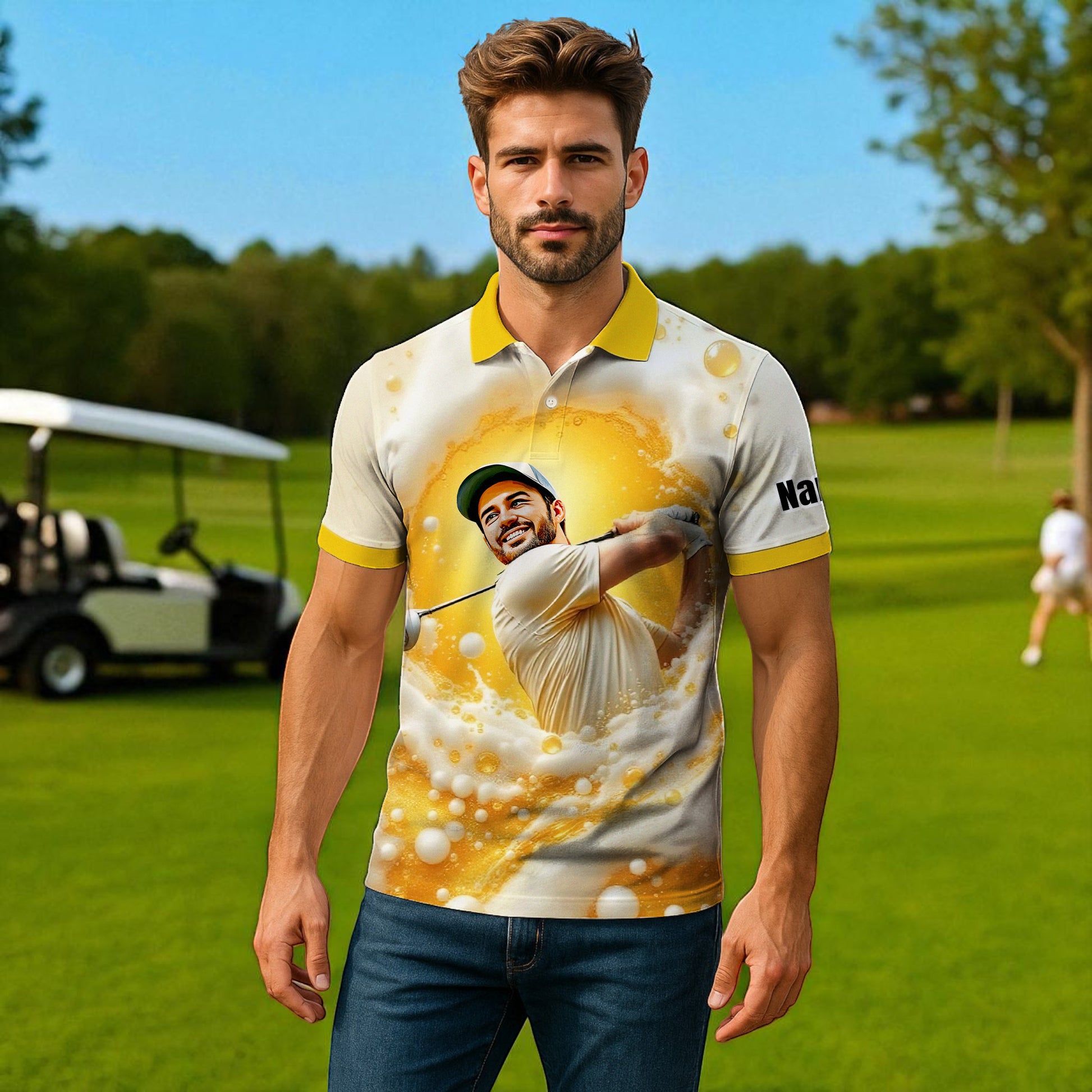 HomyGifts Men's Customized Face Artistic Golf Polo Shirt, Beer pattern Design, Special Gift for Beer & Golf Lovers, Summer Party Outfit, Unique Gift for Men Style 12