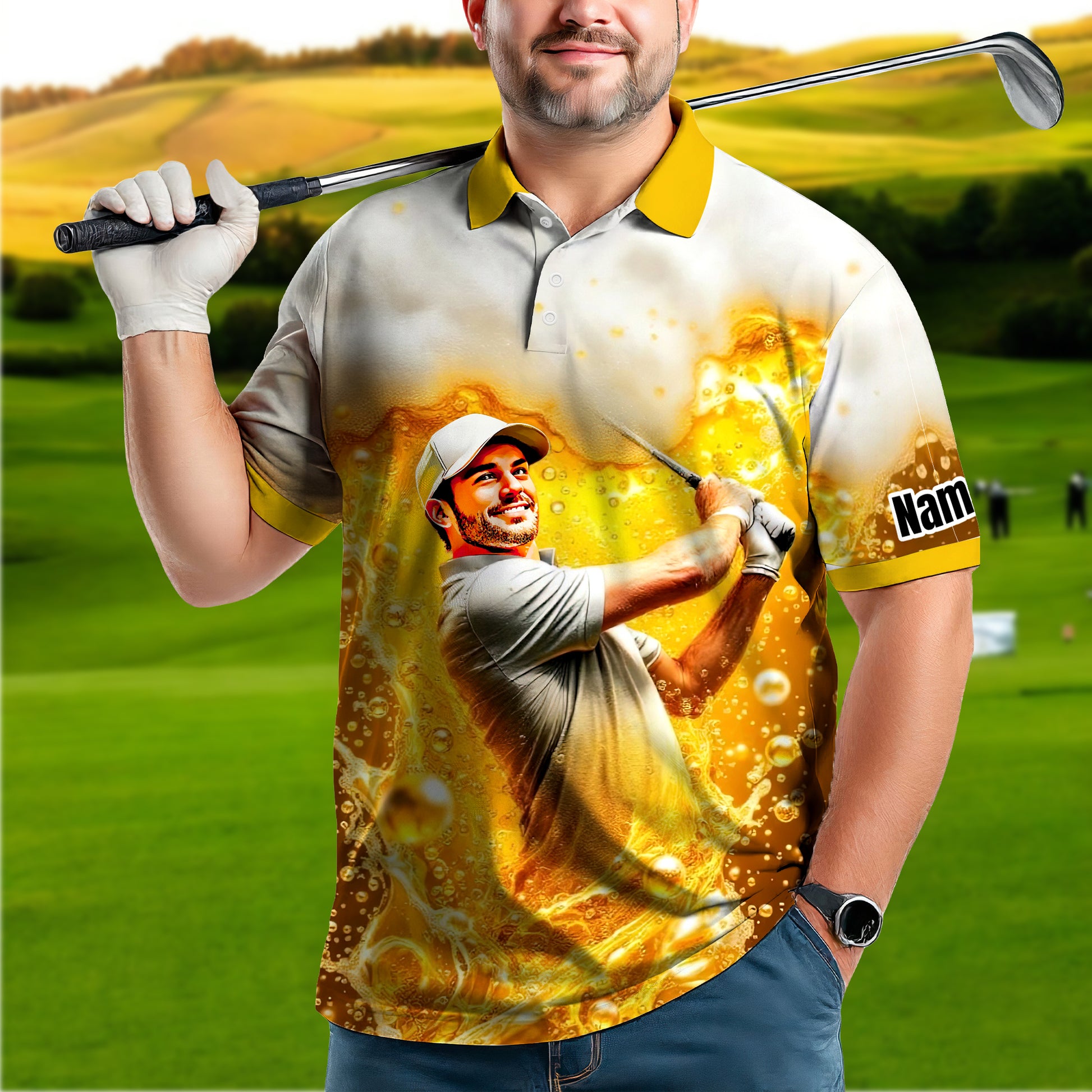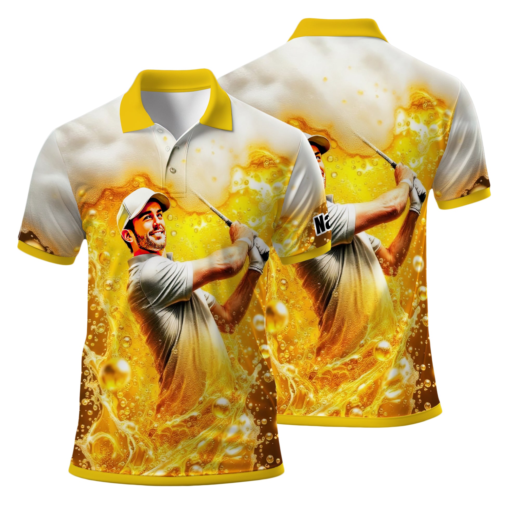 HomyGifts Men's Customized Face Artistic Golf Polo Shirt, Beer pattern Design, Special Gift for Beer & Golf Lovers, Summer Party Outfit, Unique Gift for Men Style 15