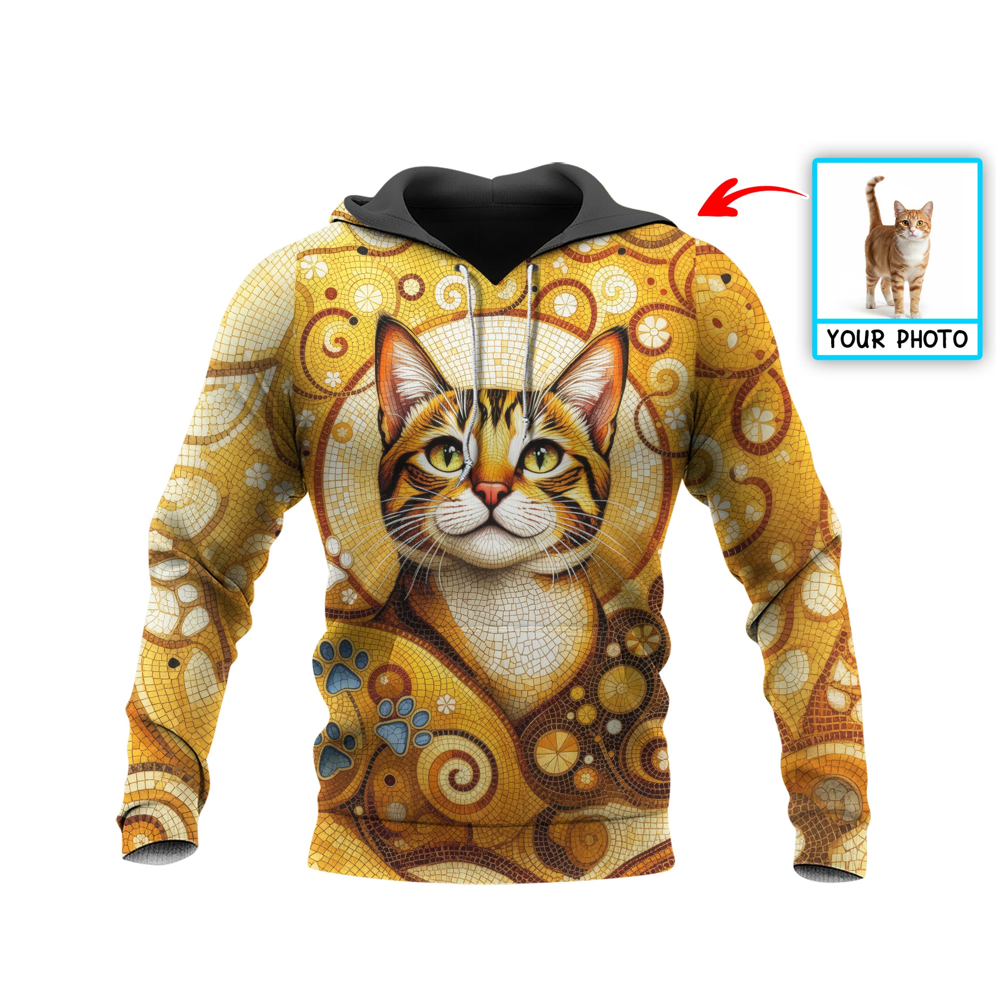Custom Cat Mosaic Art Hoodie – Personalized Pet Photo Hoodie, Custom Pet Portrait Sweater, Gift for Cat Lovers, Custom Cat Clothing Style 2