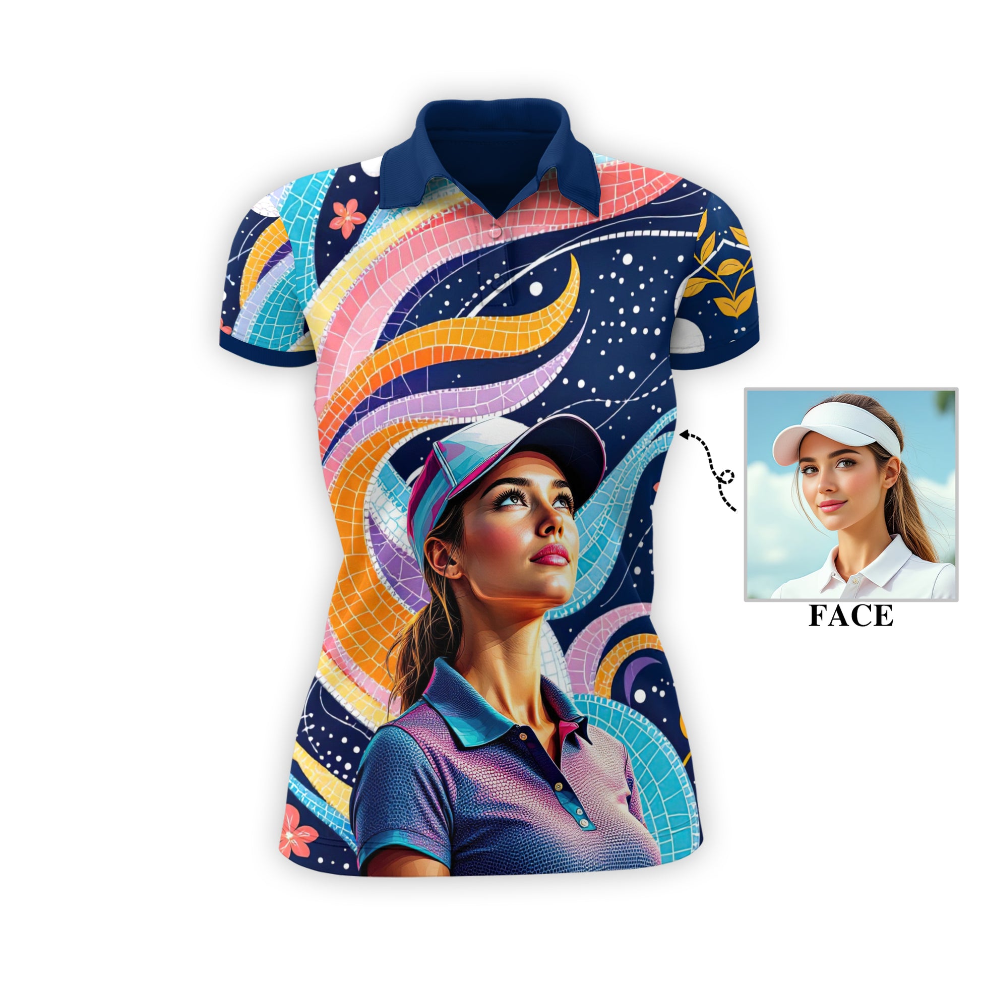 Custom Face Artistic Golf Polo Shirt for Women - Mosaic Design Style 12
