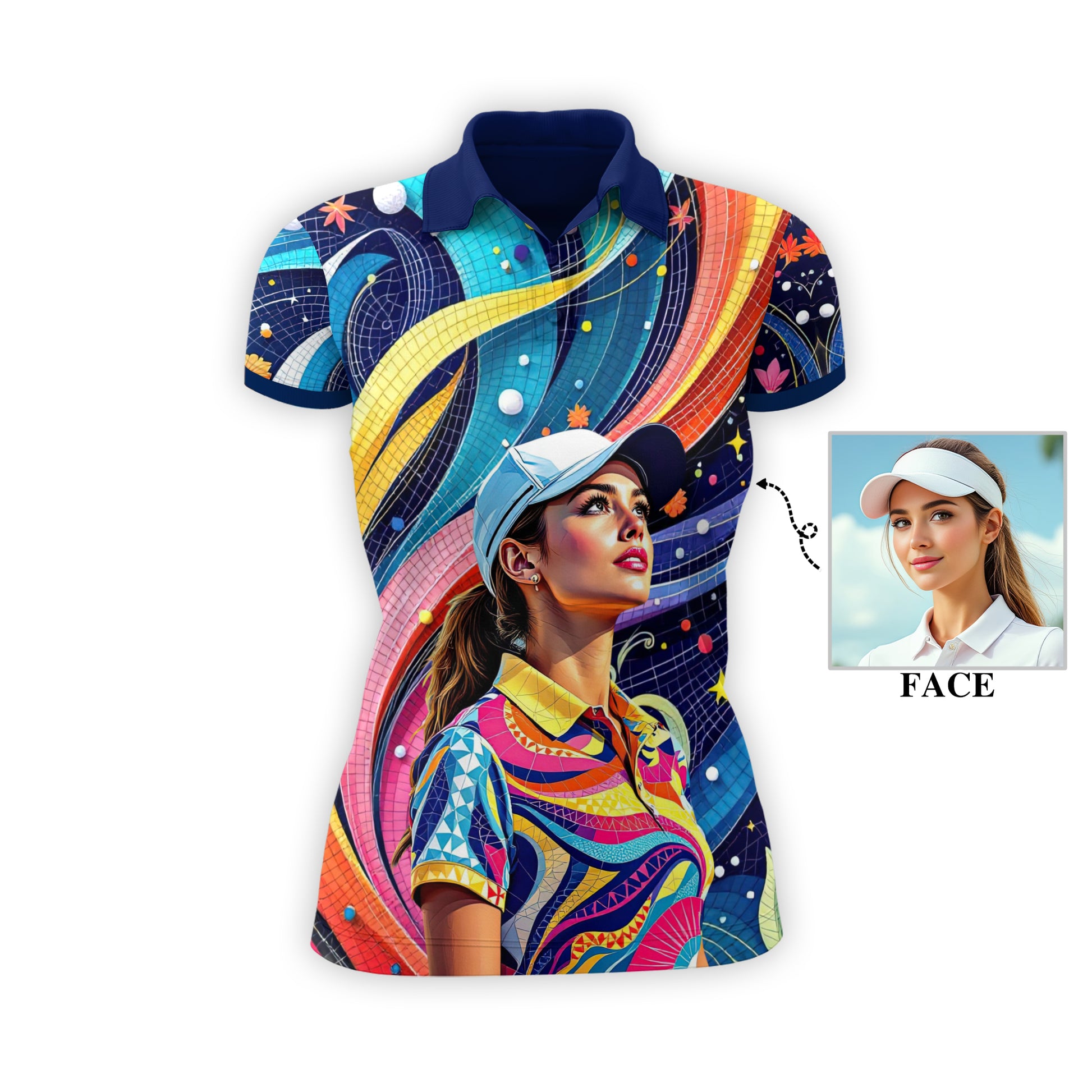 Custom Face Artistic Golf Polo Shirt for Women - Mosaic Design Style 16