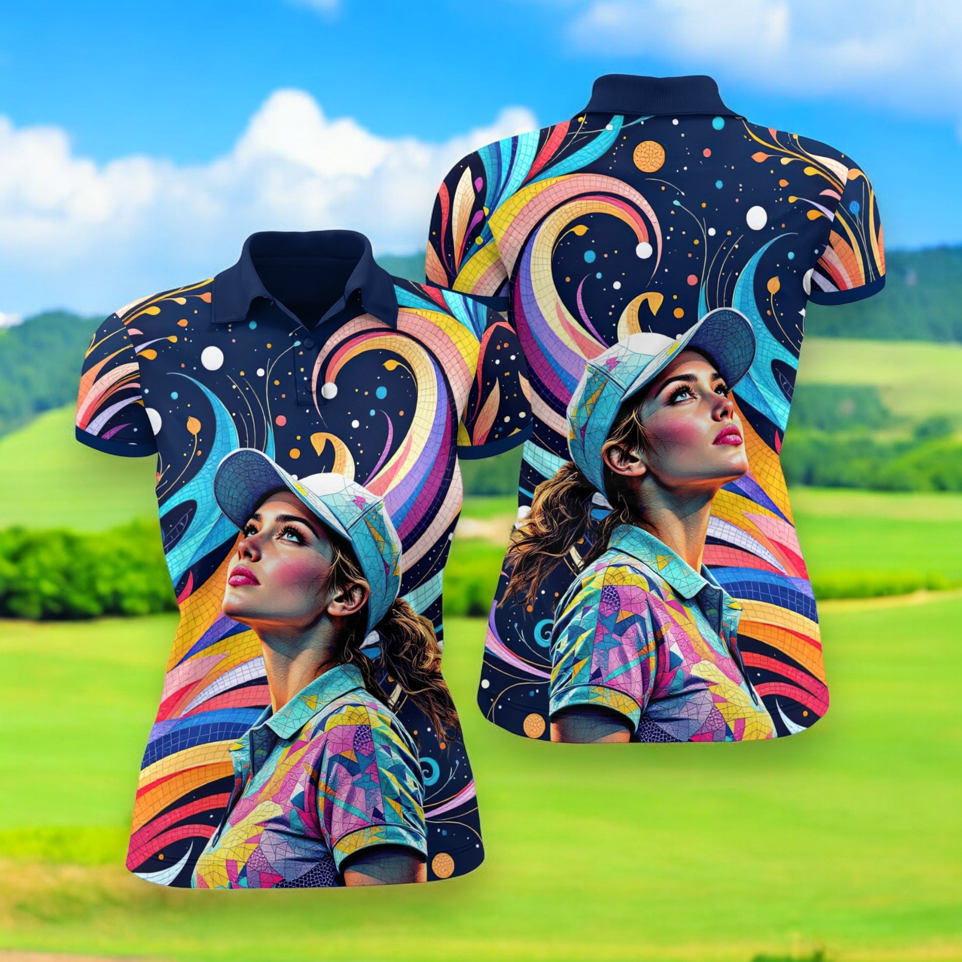 Custom Face Artistic Golf Polo Shirt for Women - Mosaic Design Style 17