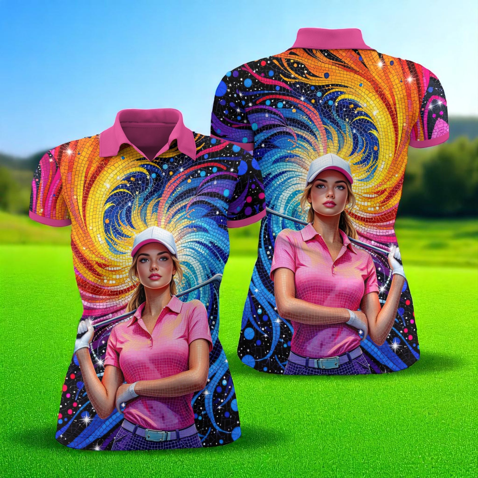 Make a bold statement on and off the course with this custom-made golf polo, featuring your face transformed into a vibrant artistic design. Perfect as a gift, sportswear, or a unique addition to your wardrobe.