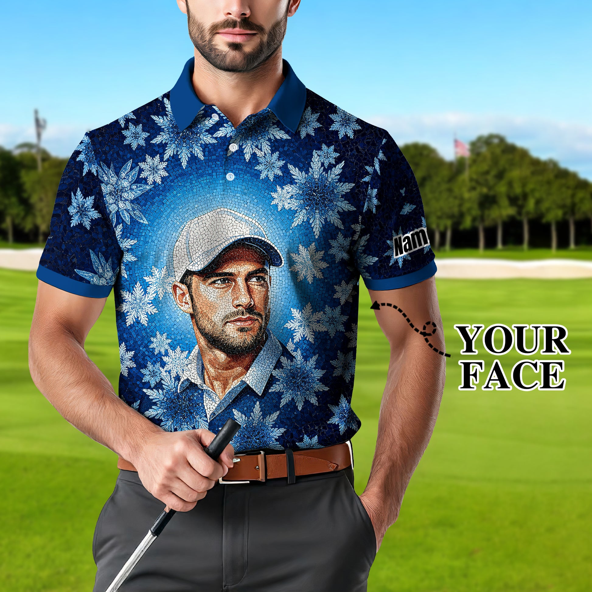 Custom Face Golf Polo Shirt – Personalized Christmas Golf Shirt for Him, Unique Holiday Gift for Golfer, Snowflake Design Golf Apparel Style 10