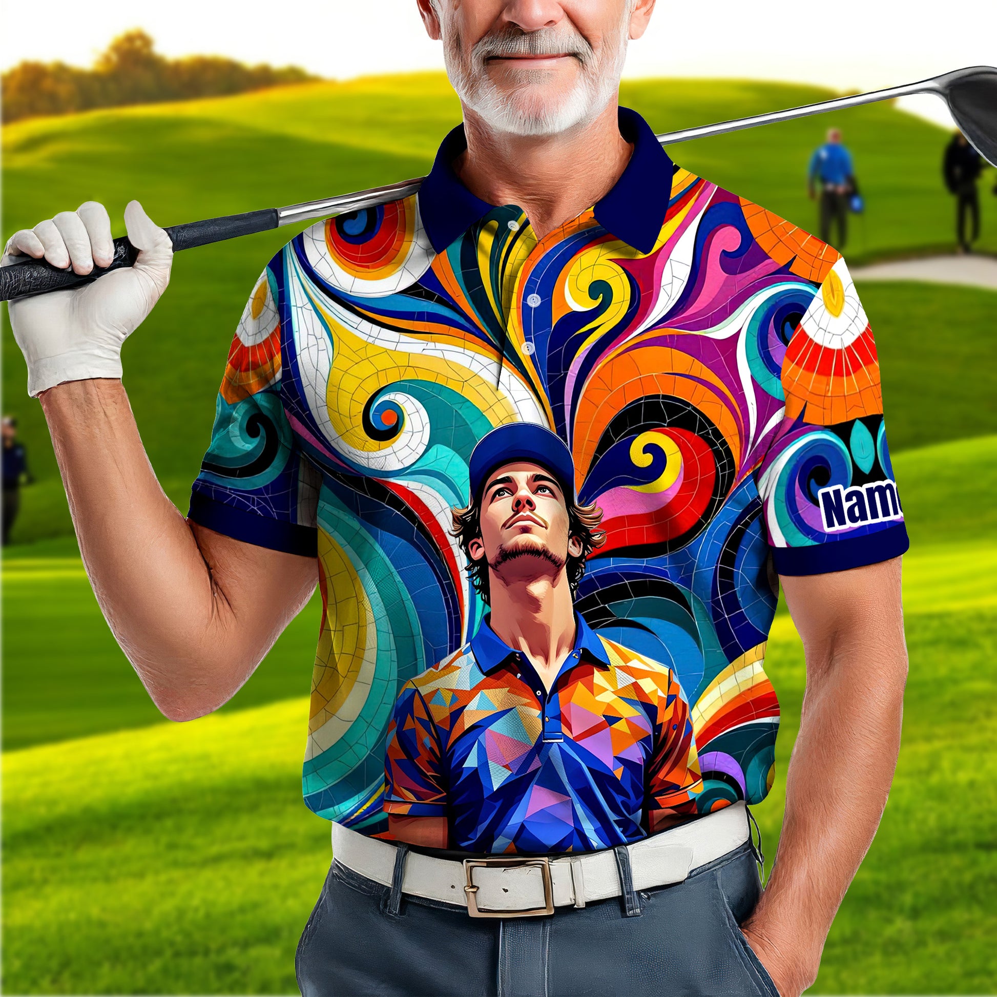 HomyGifts Men's Customized Face Artistic Golf Polo Shirt, Mosaic Art Style, Unique Personalized Golf Polo For Men Style 3