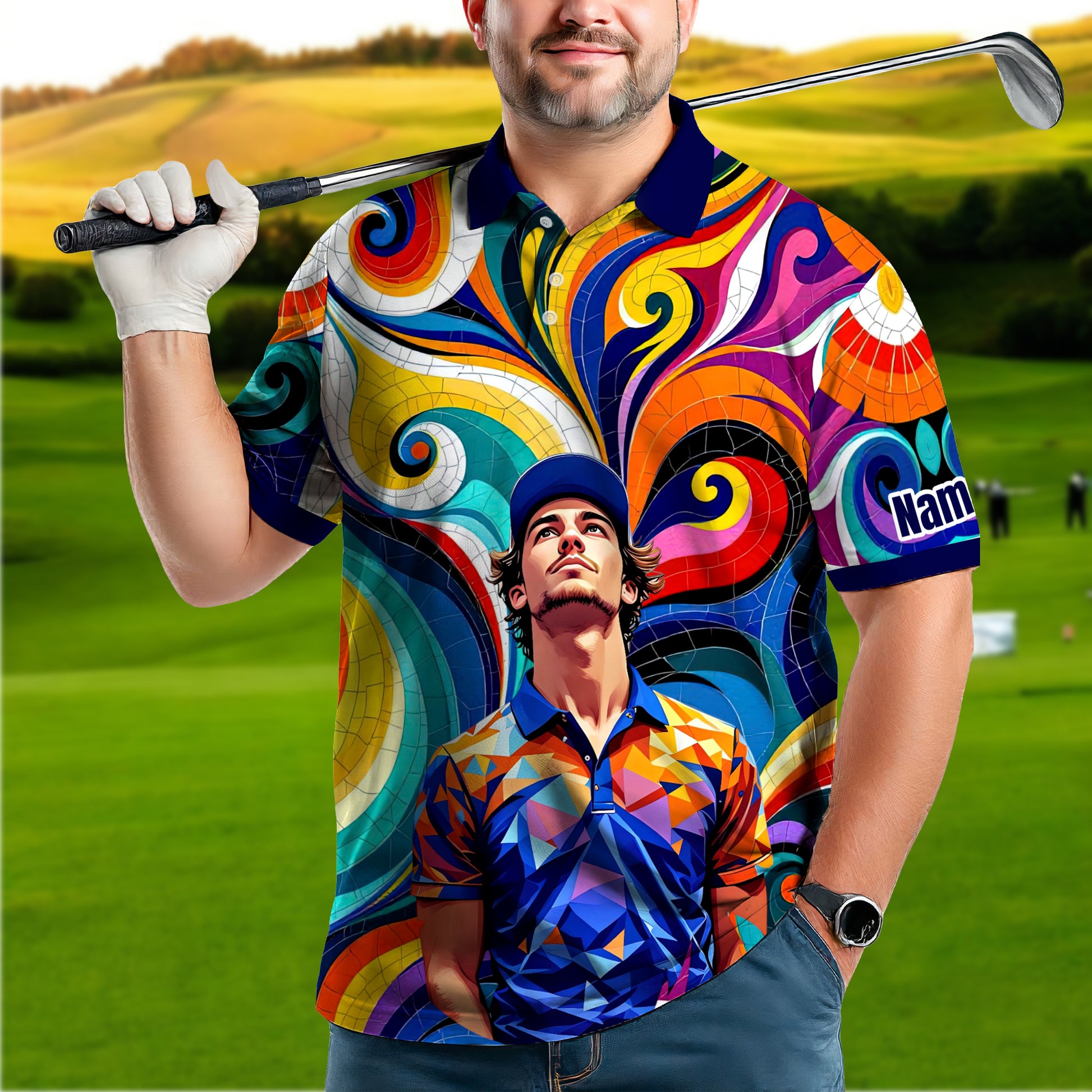 Make a bold statement on and off the course with this custom-made golf polo, featuring your face transformed into a vibrant artistic design. Perfect as a gift, sportswear, or a unique addition to your wardrobe.