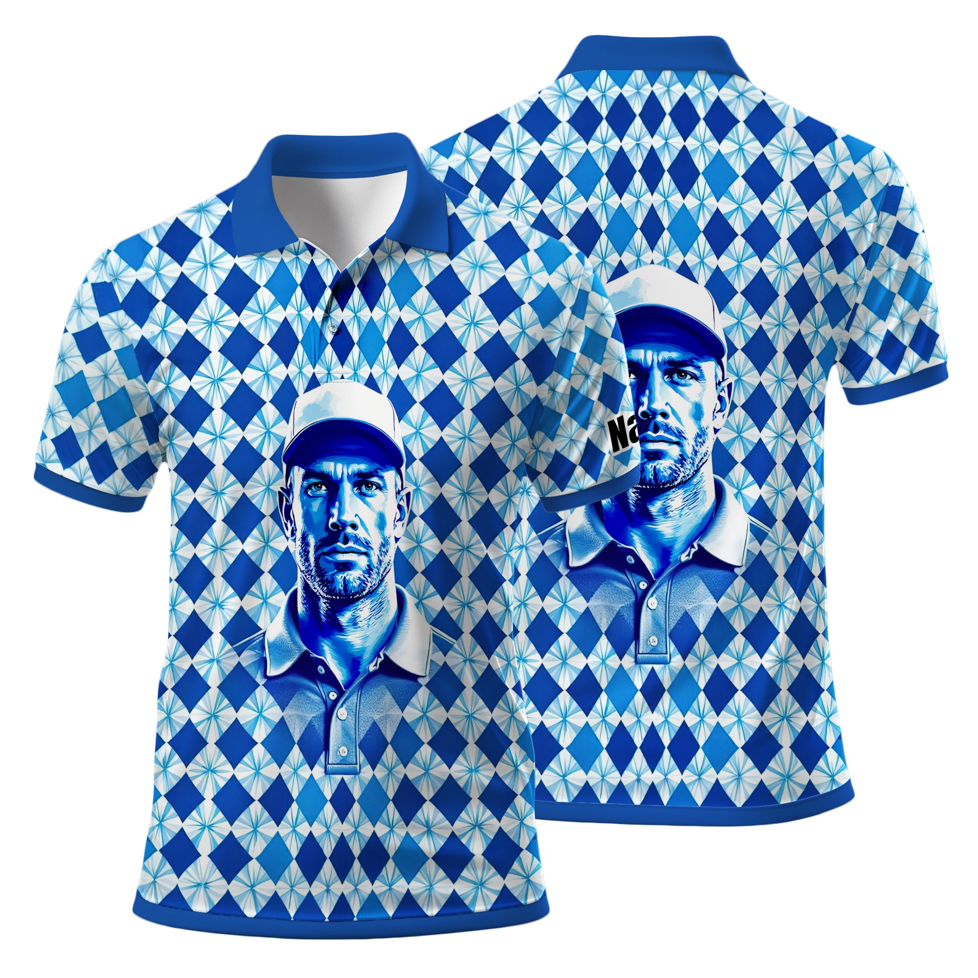 Custom Face Polo Shirt – Geometric Diamond Pattern | Personalized Photo Golf Polo | Unique Gift for Him, Retro Geometric Style Shirt Style 13