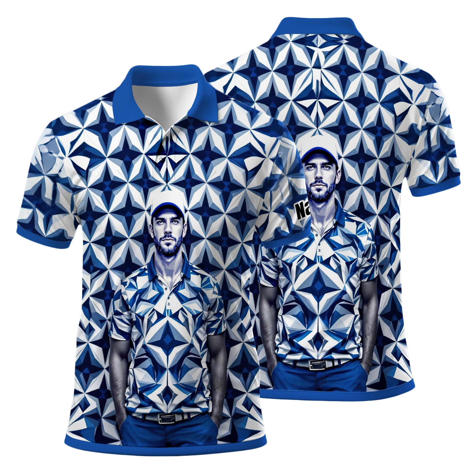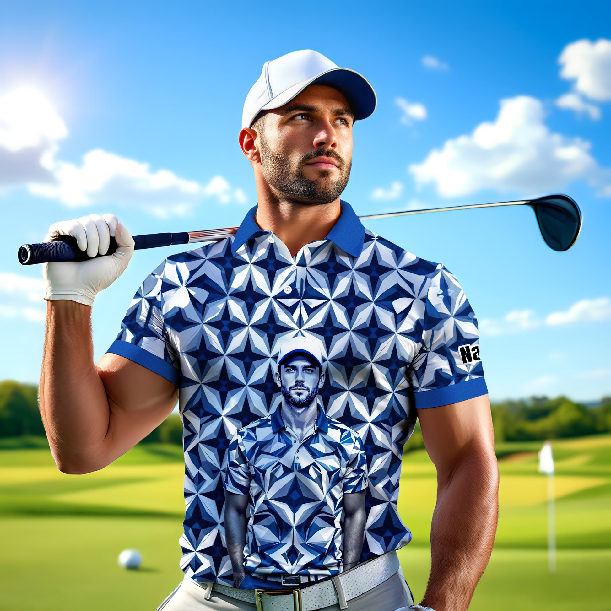 Custom Face Polo Shirt – Geometric Diamond Pattern | Personalized Photo Golf Polo | Unique Gift for Him, Retro Geometric Style Shirt Style 17