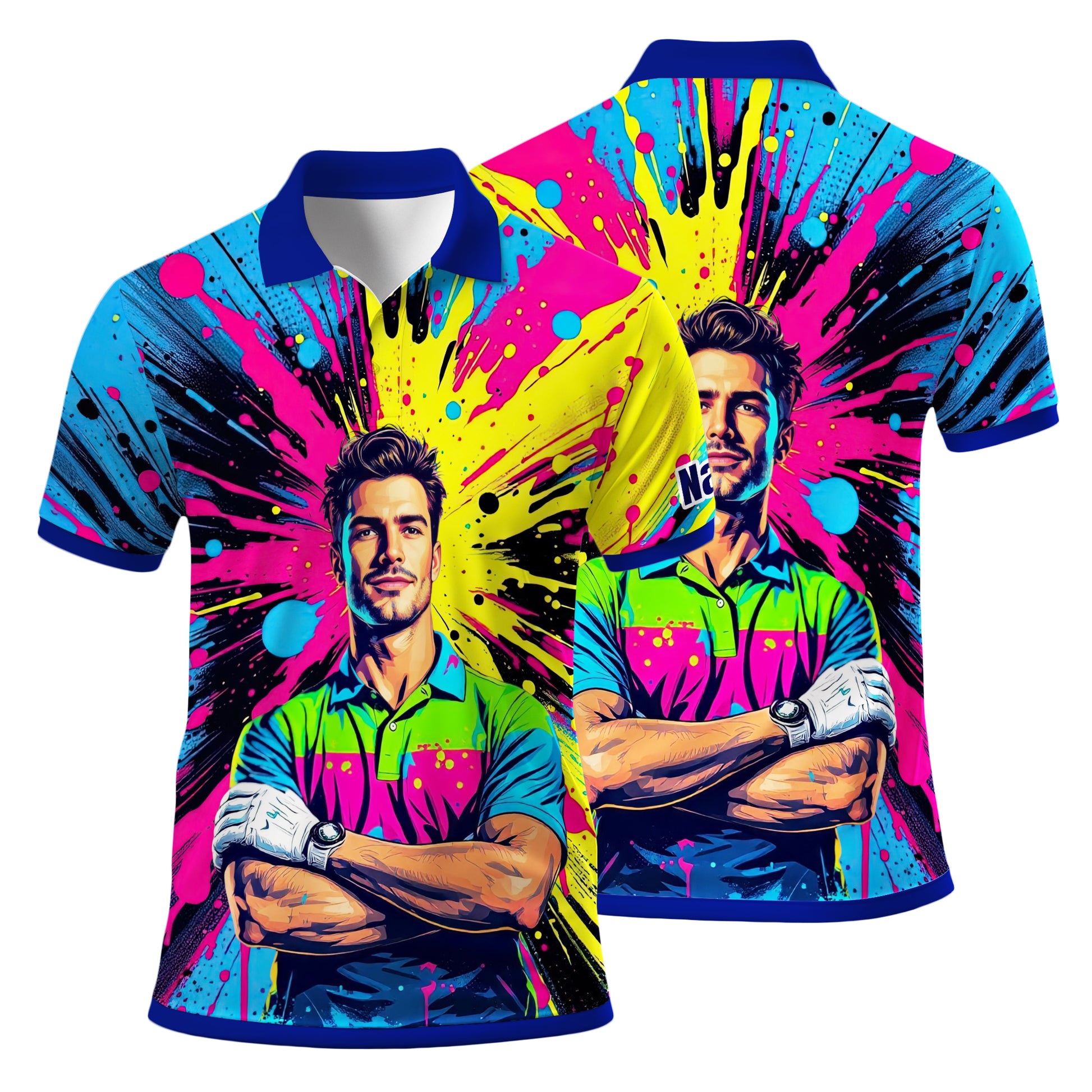 Make a bold statement on and off the course with this custom-made golf polo, featuring your face transformed into a vibrant artistic design. Perfect as a gift, sportswear, or a unique addition to your wardrobe.