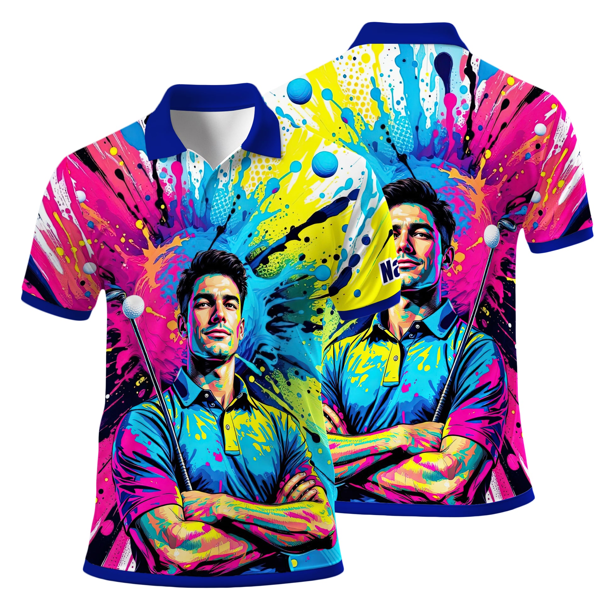 Make a bold statement on and off the course with this custom-made golf polo, featuring your face transformed into a vibrant artistic design. Perfect as a gift, sportswear, or a unique addition to your wardrobe.