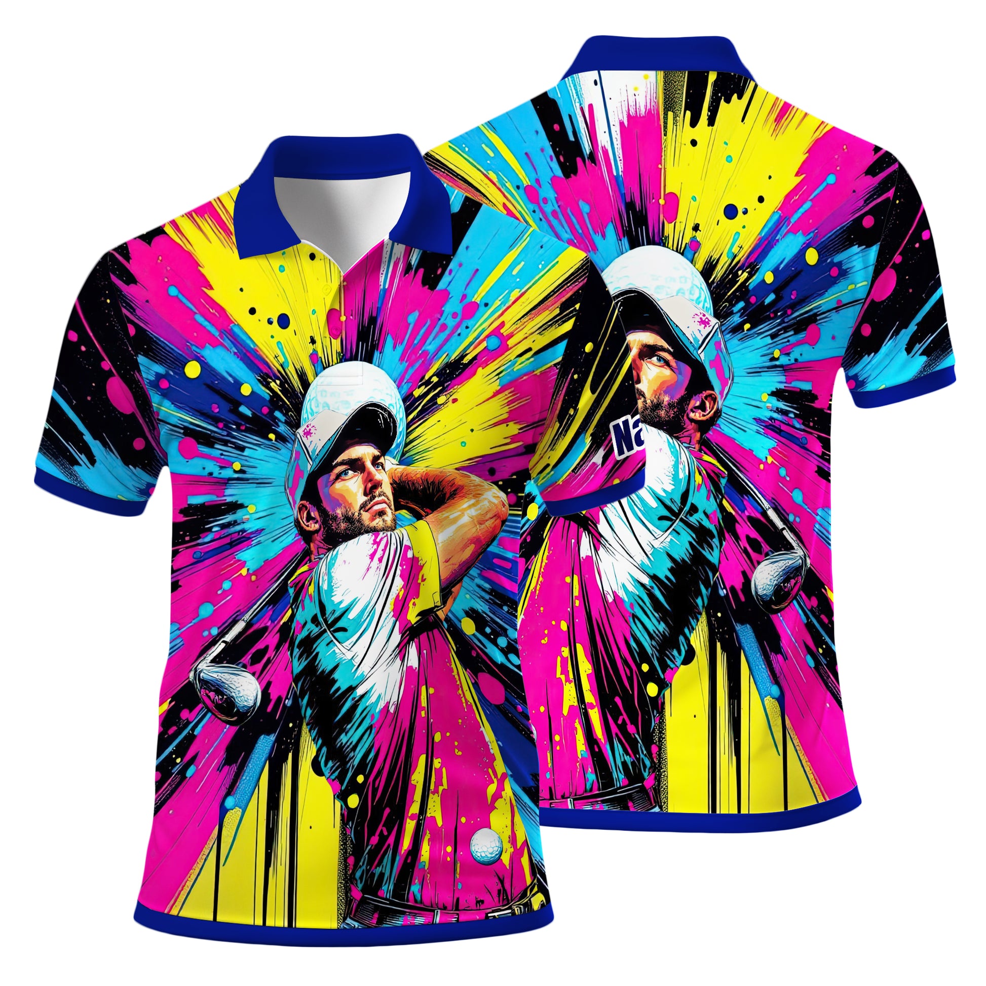 Make a bold statement on and off the course with this custom-made golf polo, featuring your face transformed into a vibrant artistic design. Perfect as a gift, sportswear, or a unique addition to your wardrobe.