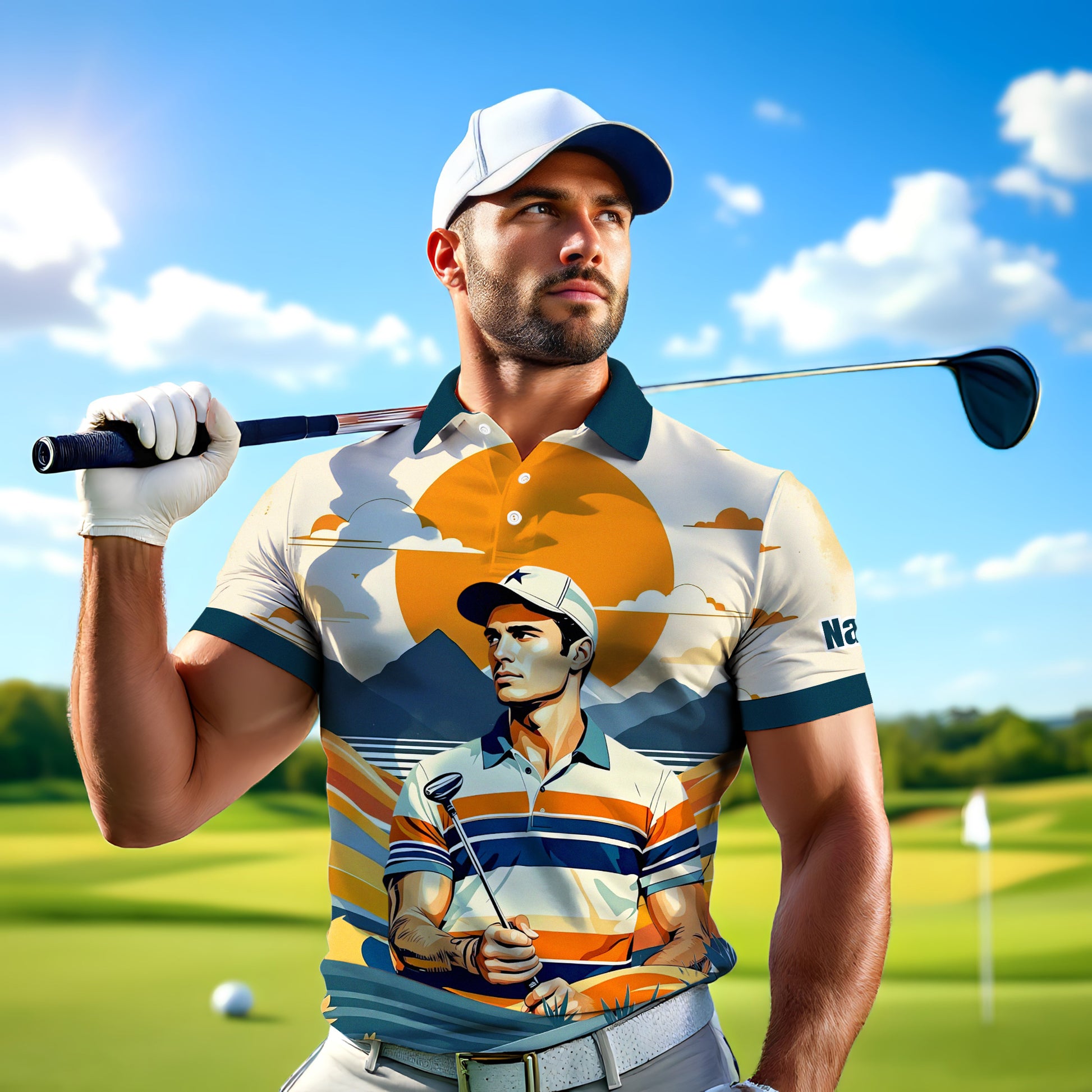 Custom Vintage Americana Golf Polo with Your Face - Retro Personalized Gift for Men Style 2