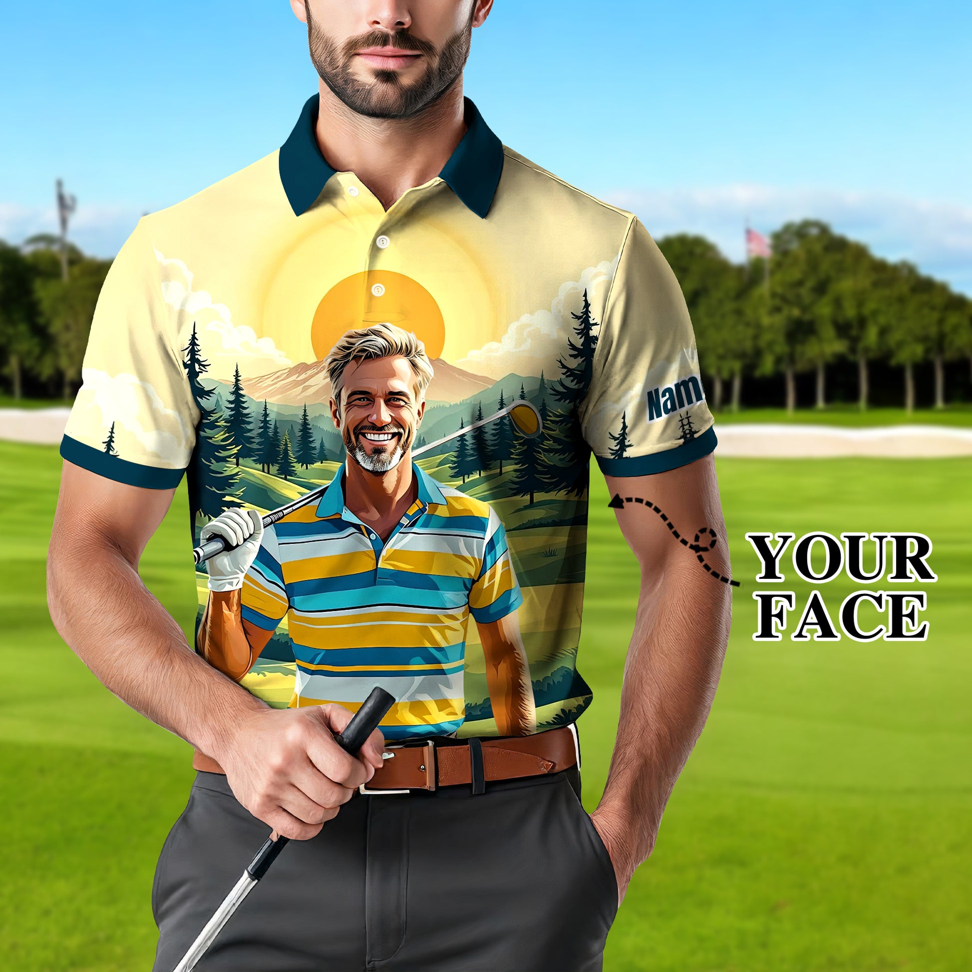 Custom Vintage Americana Golf Polo with Your Face - Retro Personalized Gift for Men Style 12