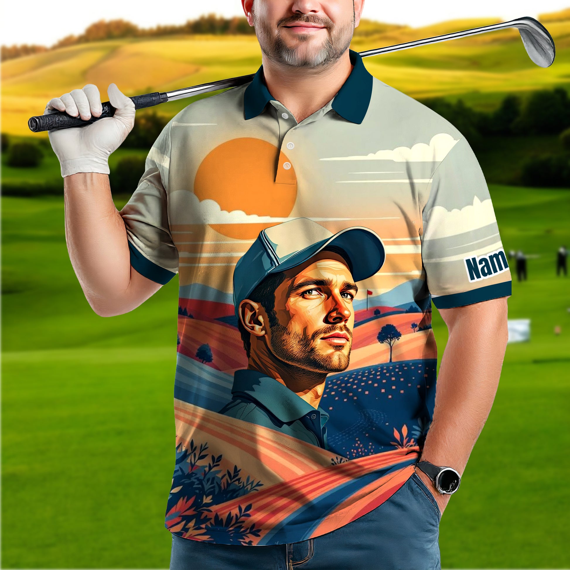 Custom Vintage Americana Golf Polo with Your Face - Retro Personalized Gift for Men Style 4