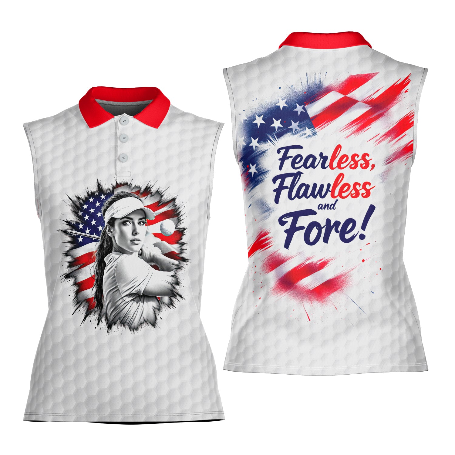 Fearless, Flawless, Fore! Women's Custom Sleeveless Golf Polo Shirt - Patriotic & Personalized Style 5