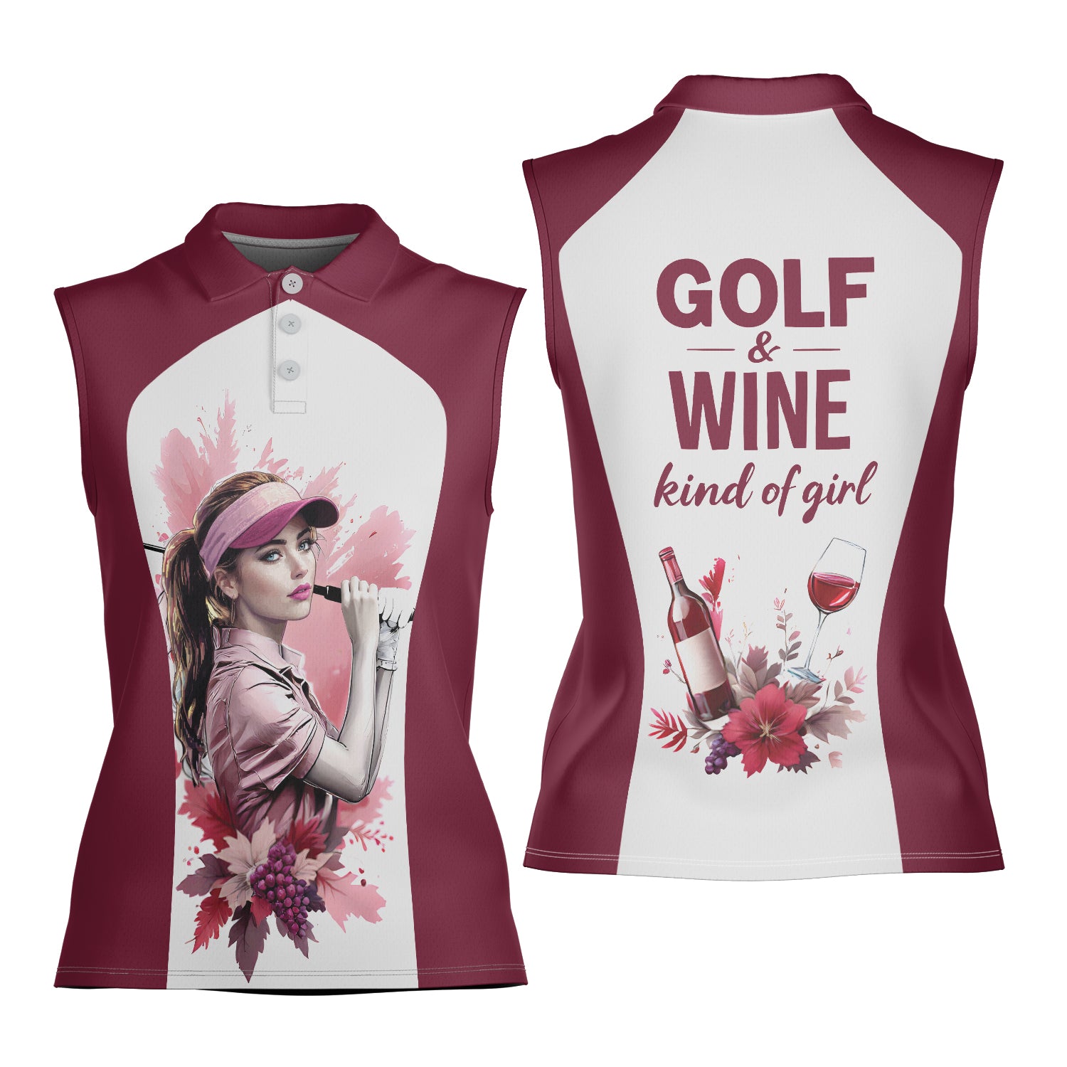 Golf & Wine Kind of Women's Custom Sleeveless Golf Polo Shirt - Stylish Golf Apparel for Women Style 2