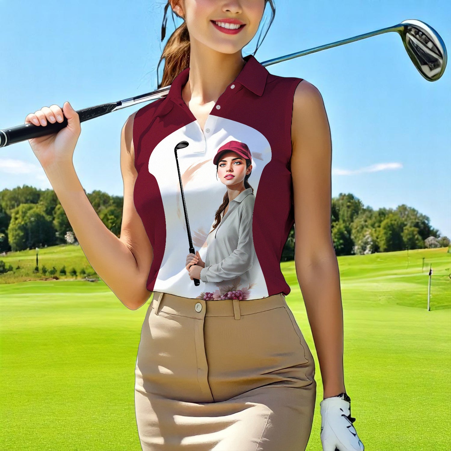 Golf & Wine Kind of Women's Custom Sleeveless Golf Polo Shirt - Stylish Golf Apparel for Women Style 12
