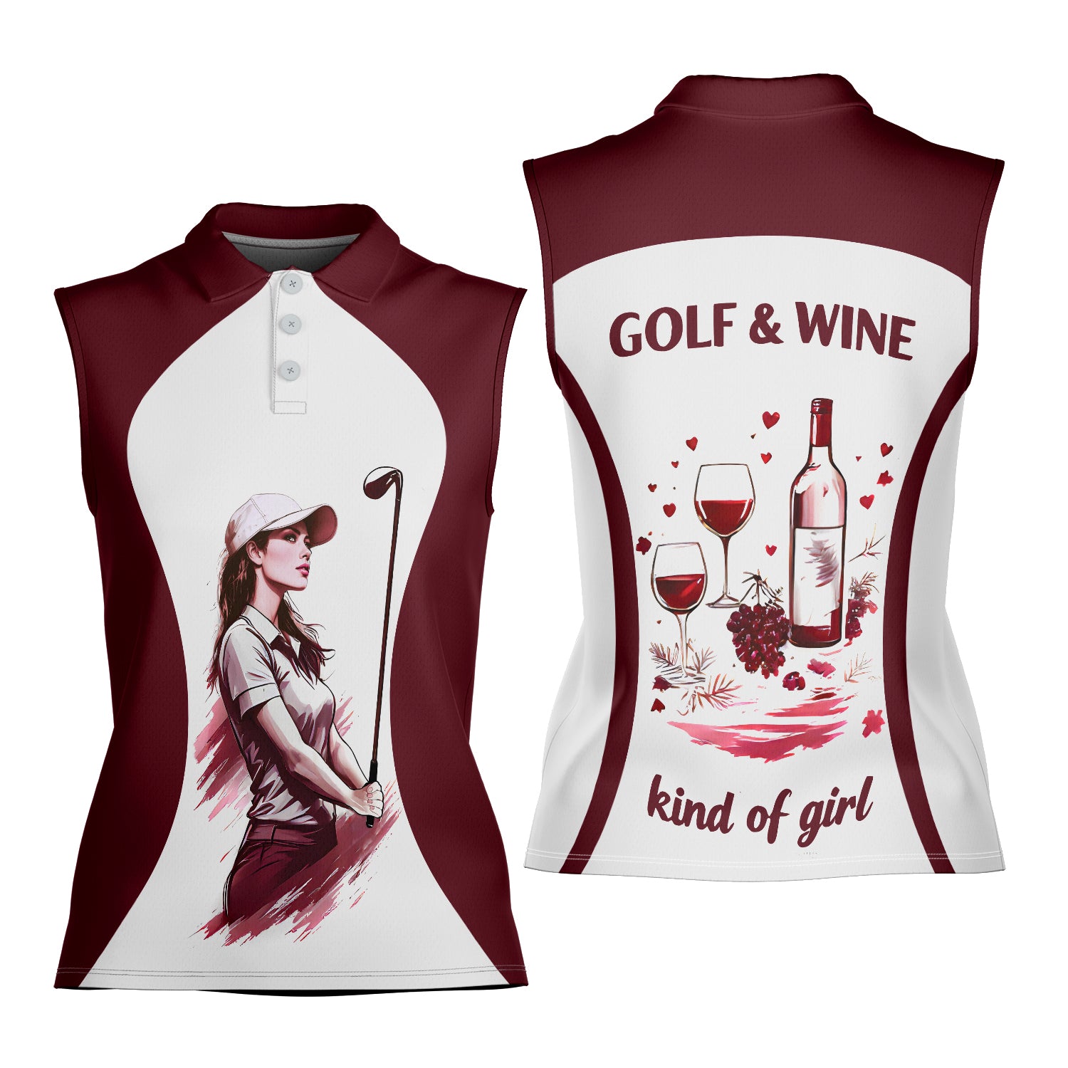Golf & Wine Kind of Women's Custom Sleeveless Golf Polo Shirt - Stylish Golf Apparel for Women Style 6