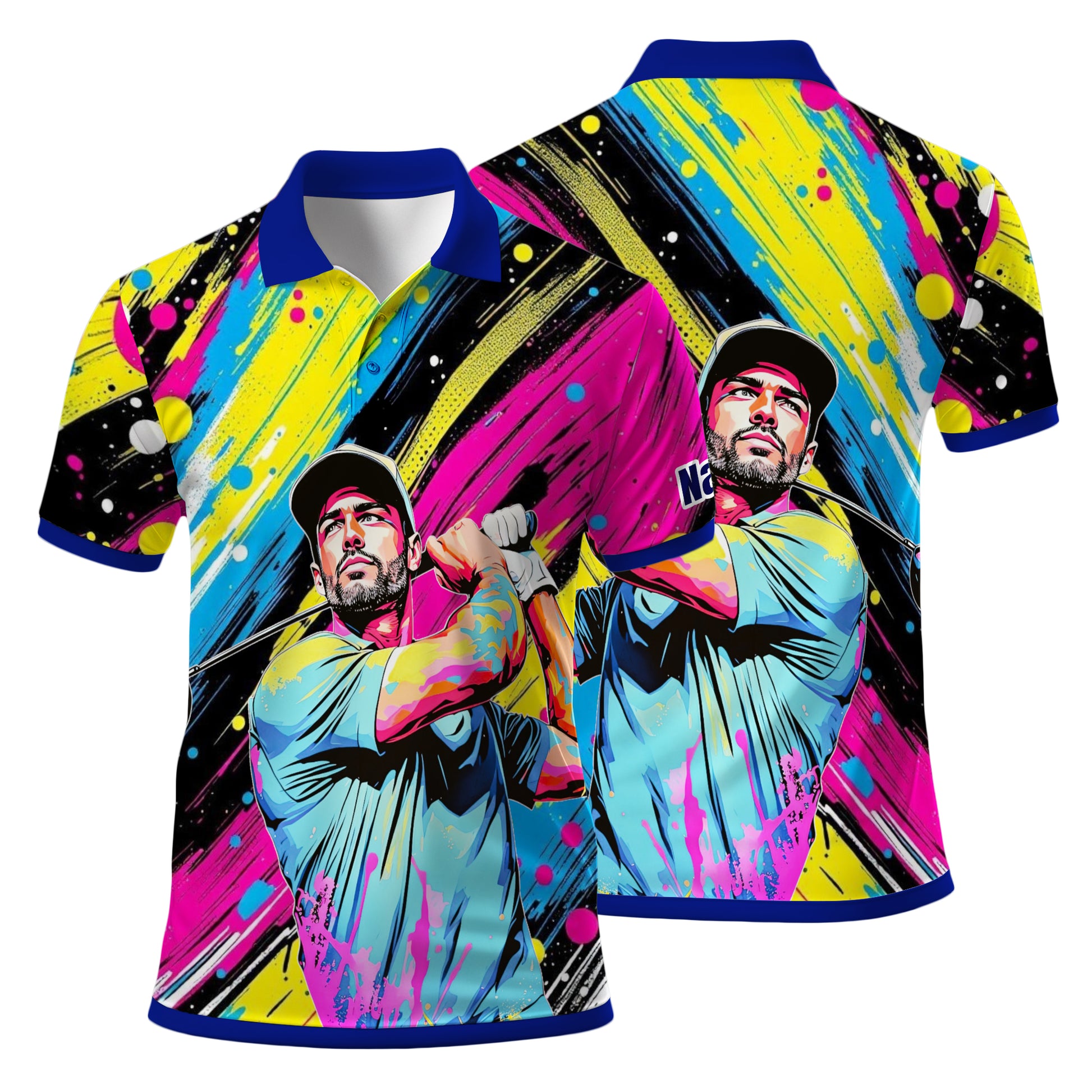 Make a bold statement on and off the course with this custom-made golf polo, featuring your face transformed into a vibrant artistic design. Perfect as a gift, sportswear, or a unique addition to your wardrobe.
