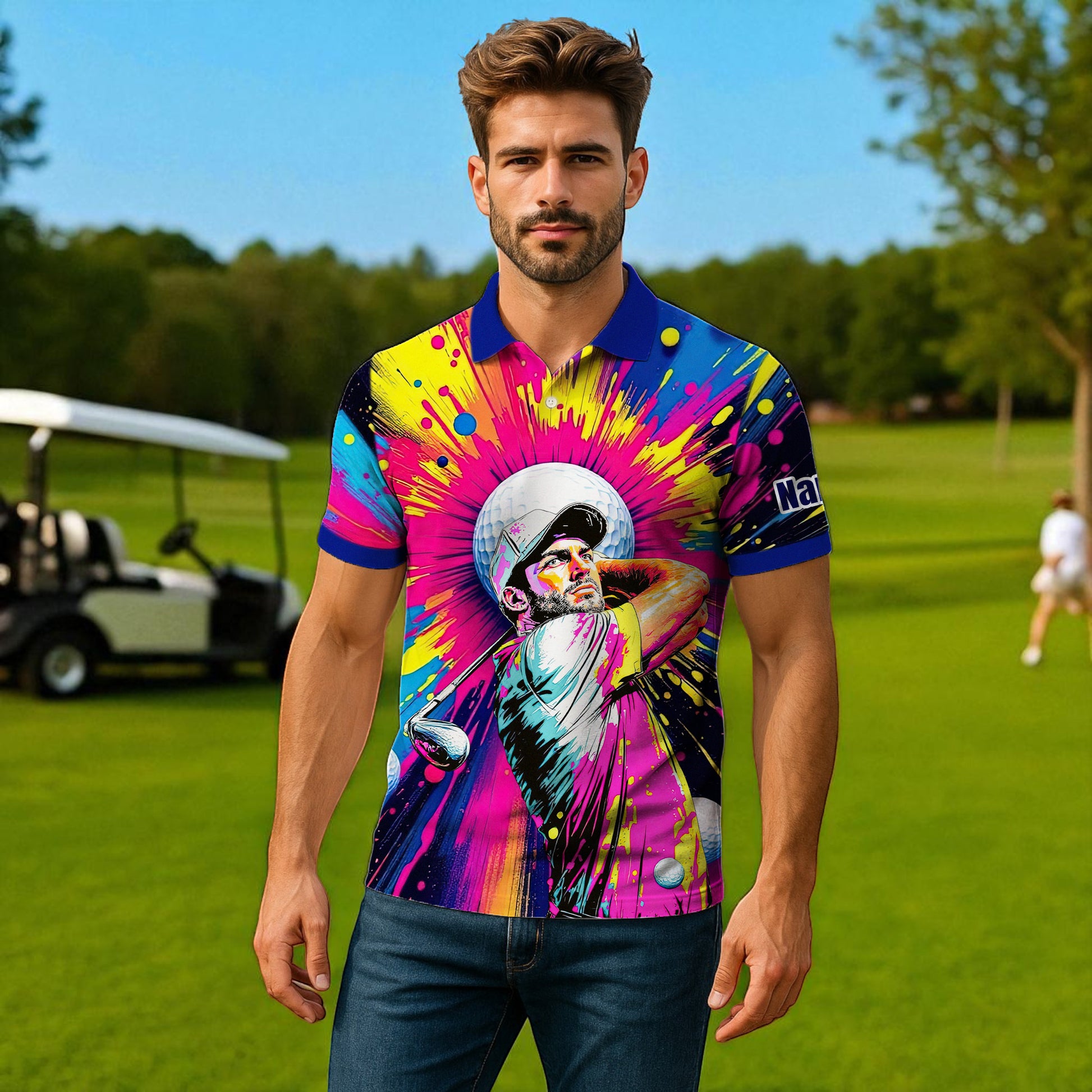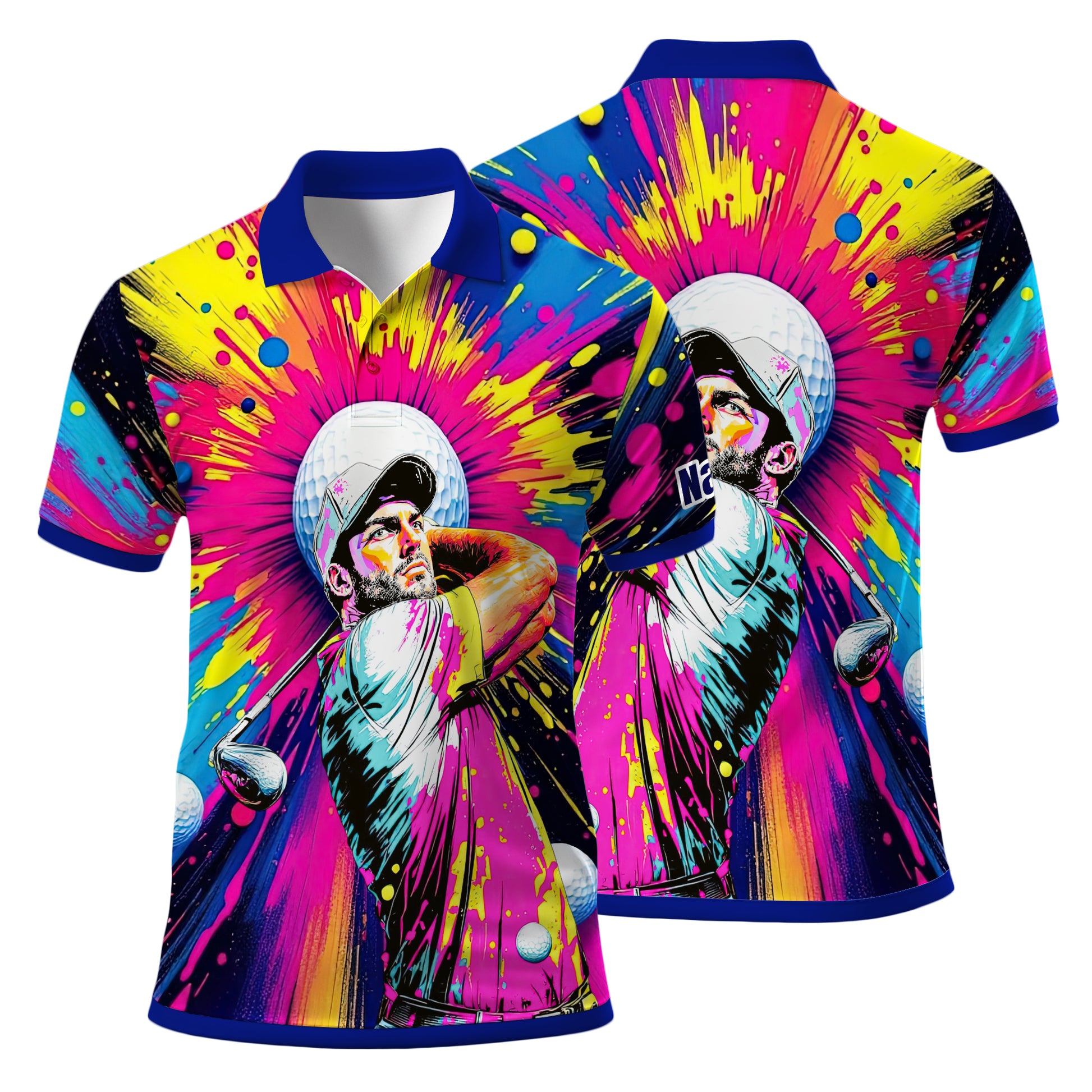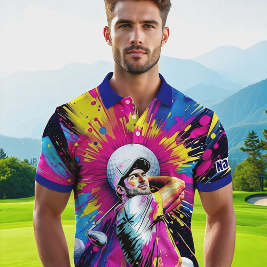 Make a bold statement on and off the course with this custom-made golf polo, featuring your face transformed into a vibrant artistic design. Perfect as a gift, sportswear, or a unique addition to your wardrobe.