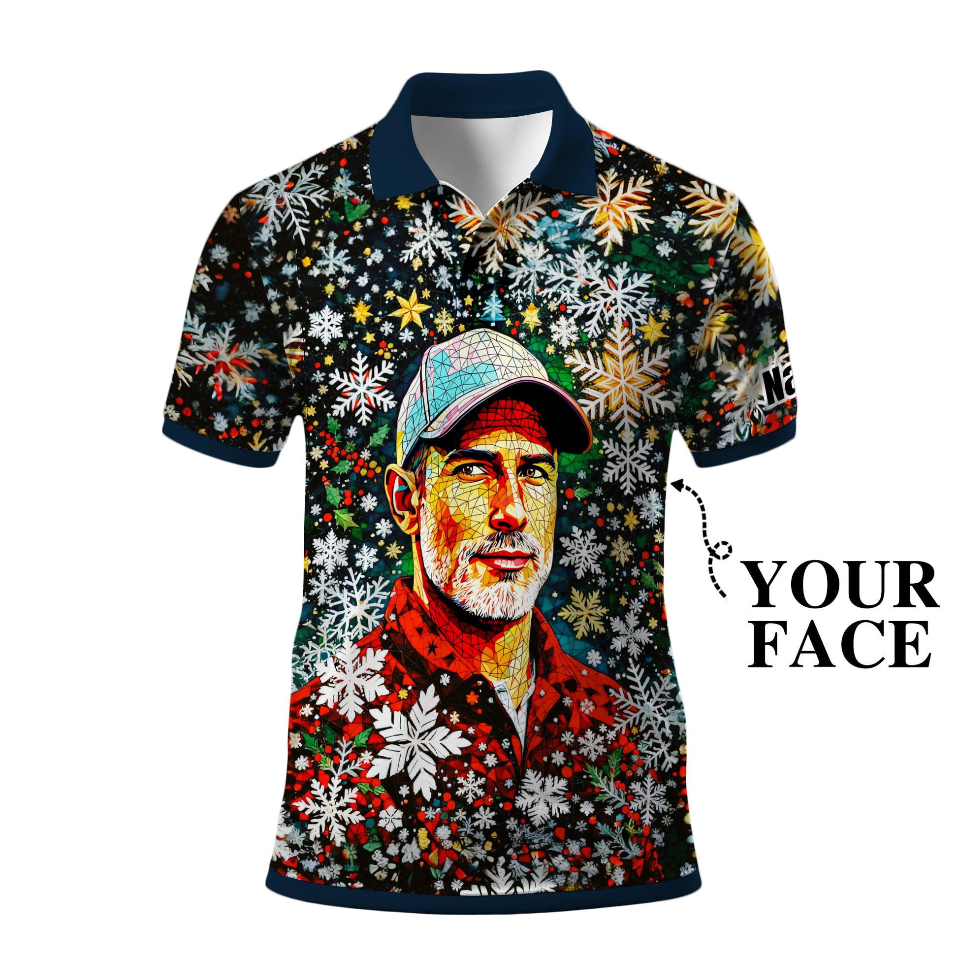 Personalized Christmas Golf Polo Shirt with Your Face – Custom Photo Holiday Shirt – Unique Mosaic Art Xmas Gift for Men, Custom Golf Apparel Style 2