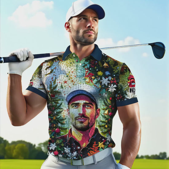 Personalized Face Golf Polo – Christmas Mosaic Design | Custom Men’s Golf Shirt Holiday Gift 2025, Style 1