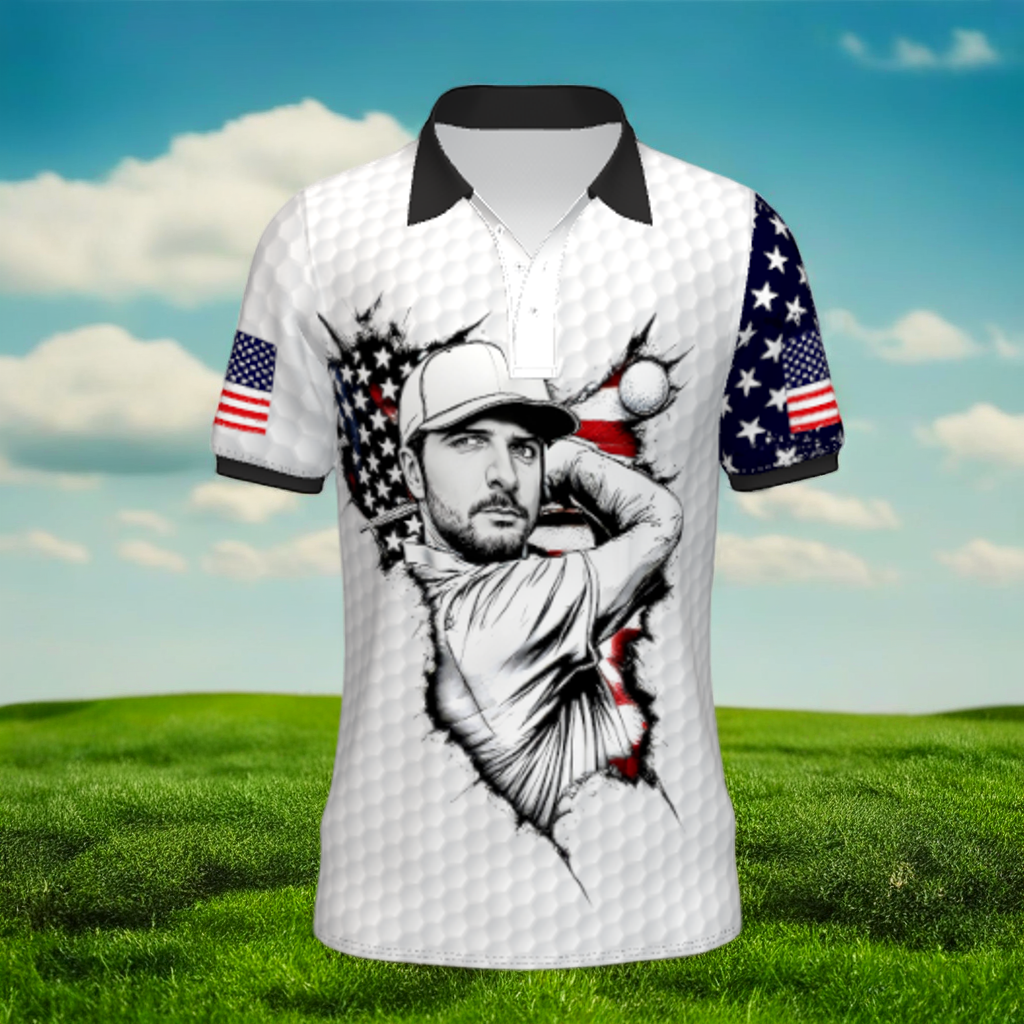 HomyGifts Men's Customized Face Artistic Golf Polo Shirt, Personalized American Flag Design, Unique Gift for Patriotic Golfers Style 12