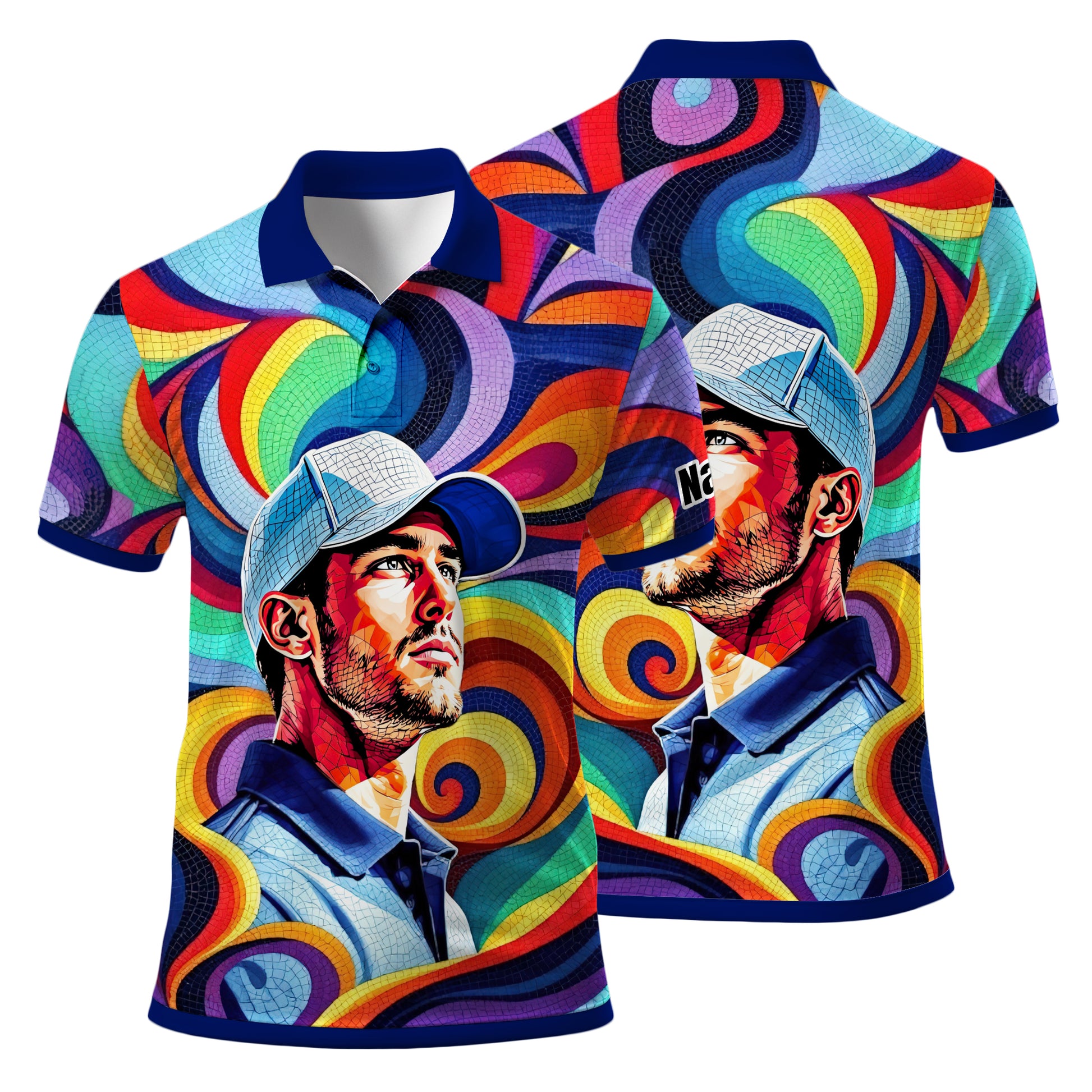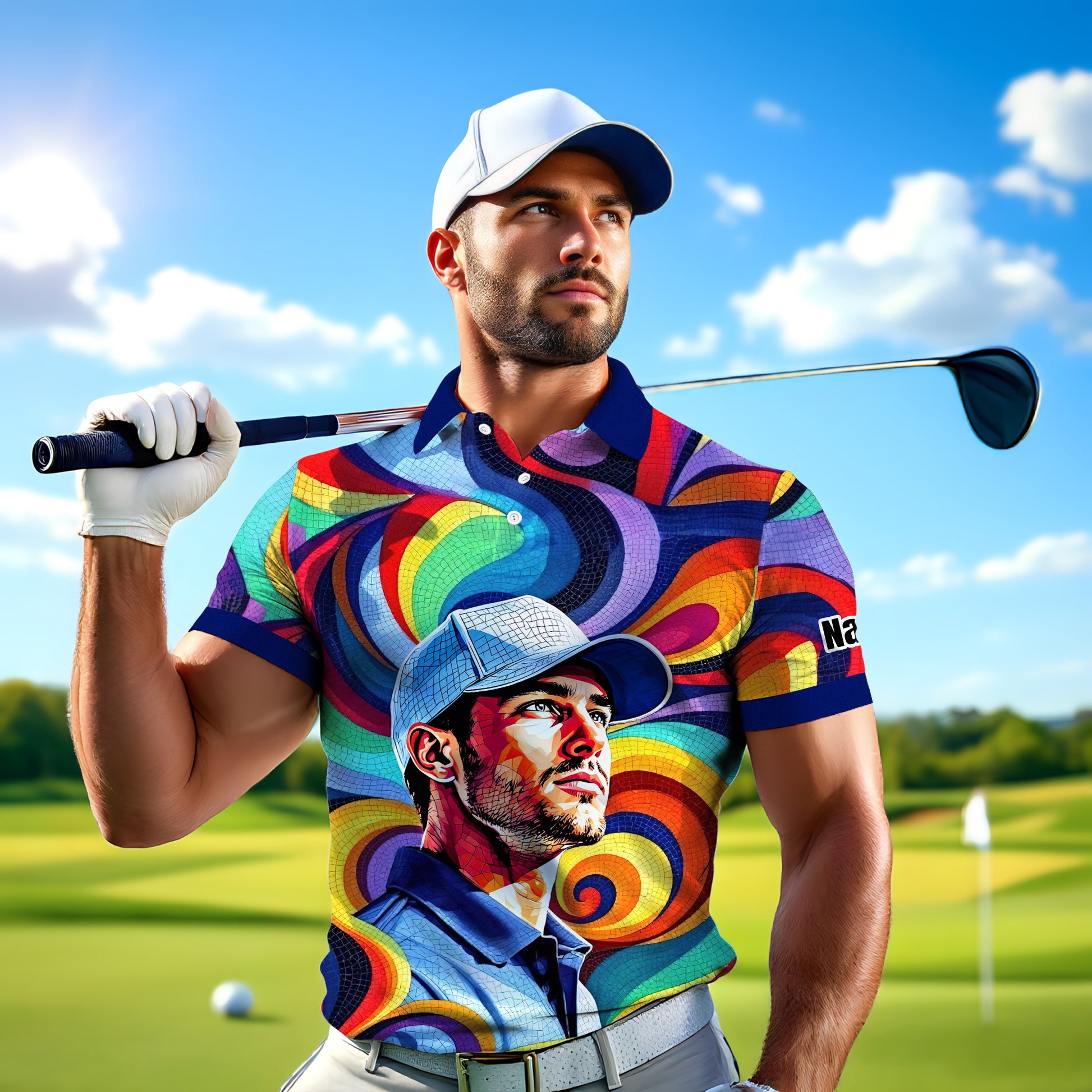 Make a bold statement on and off the course with this custom-made golf polo, featuring your face transformed into a vibrant artistic design. Perfect as a gift, sportswear, or a unique addition to your wardrobe.