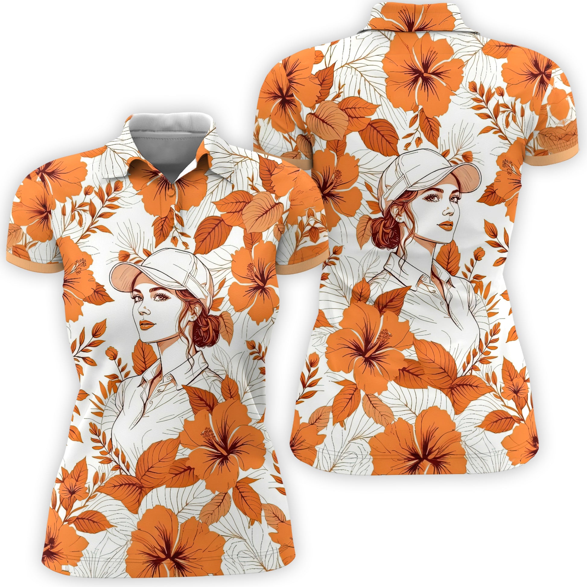 Women’s Custom Face Hibiscus Polo Shirt – Personalized Tropical Floral Polo, Unique Gift for Her, Stylish Custom Golf & Casual Wear Style 12